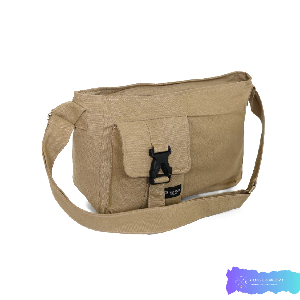 Tas selempang kanvas YoungBae Series terbuat dari bahan kanvas yang berkualitas tinggi. Kanvas adalah bahan yang kuat dan tahan lama, sehingga tas ini mampu menahan penggunaan sehari-hari. Selain itu, bahan kanvas yang ringan, membuatnya nyaman untuk digunakan dalam perjalanan sehari-hari.